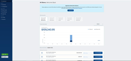Using our Online Banking portal (OLB), your customers can make a payment, track their deposits and withdrawals, and manage their assets. Our OLB has full 4-eyes, 6-eyes and 8-eyes approval workflows to create extra layers of security, along with built-in 2FA